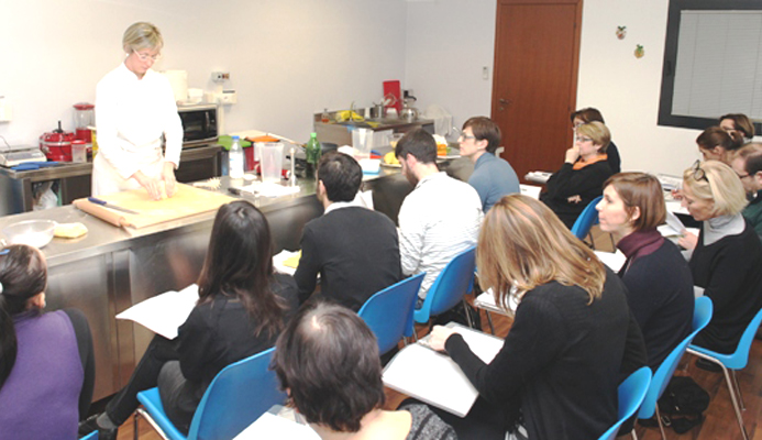 - Lezioni monografiche di pasticceria creativa, menu completi, pesce…