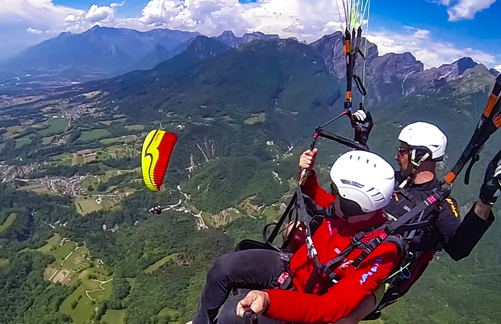 Il volo libero in parapendio biposto si pratica tutto l’anno. Tra le splendide montagne della valbelluna innevate fino ai boschi verdi dell’estate.