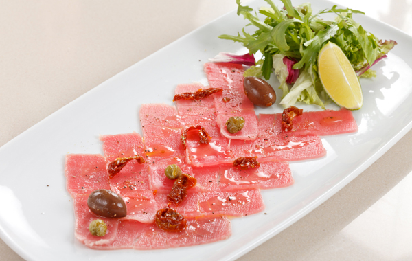 - Carpaccio di pesce spada e tonno in letto di caponata