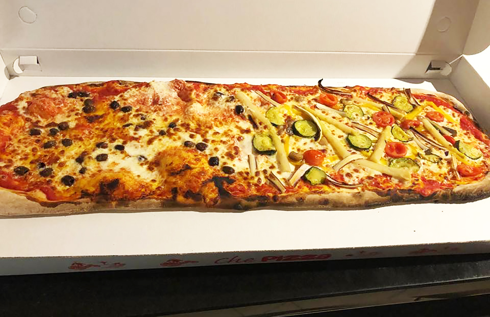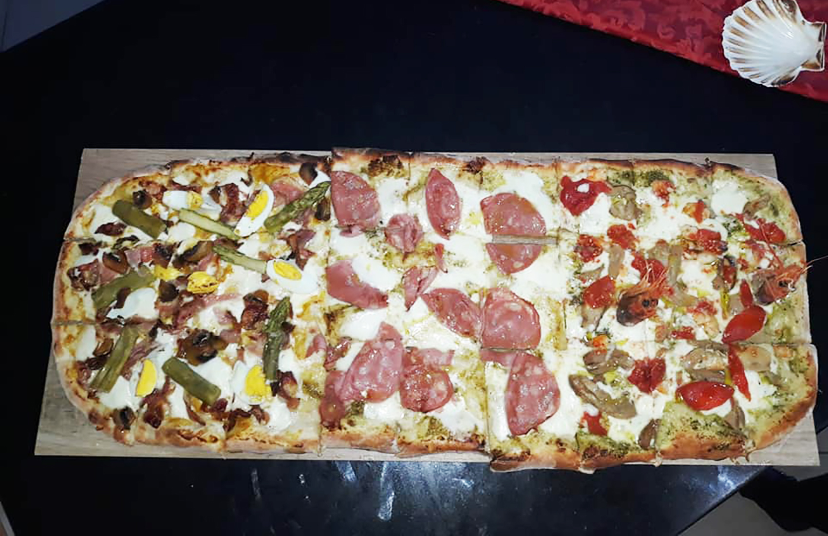 Una pizza "sfilatino" maxi da 1kg (con gli ingredienti può arrivare a pesare fino a 1,8kg!) fatta con farina multicereali o tradizionale, a seconda delle tue preferenze. Gustosa, digeribile e con ingredienti di qualità.