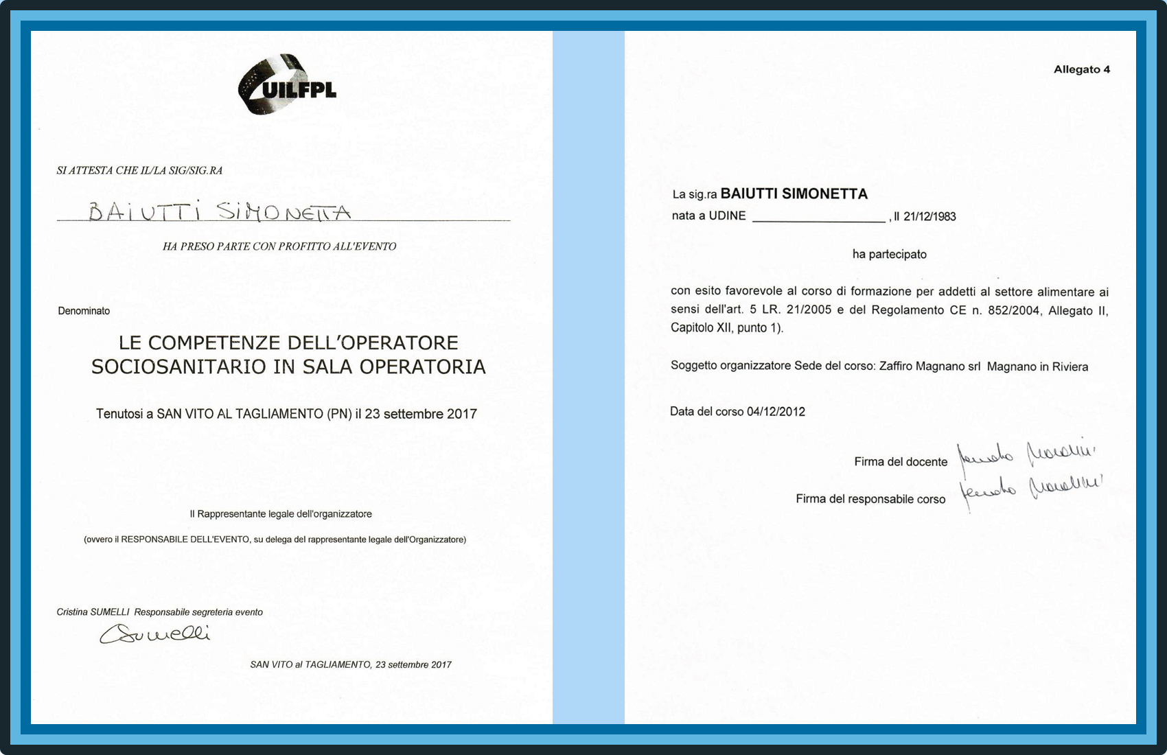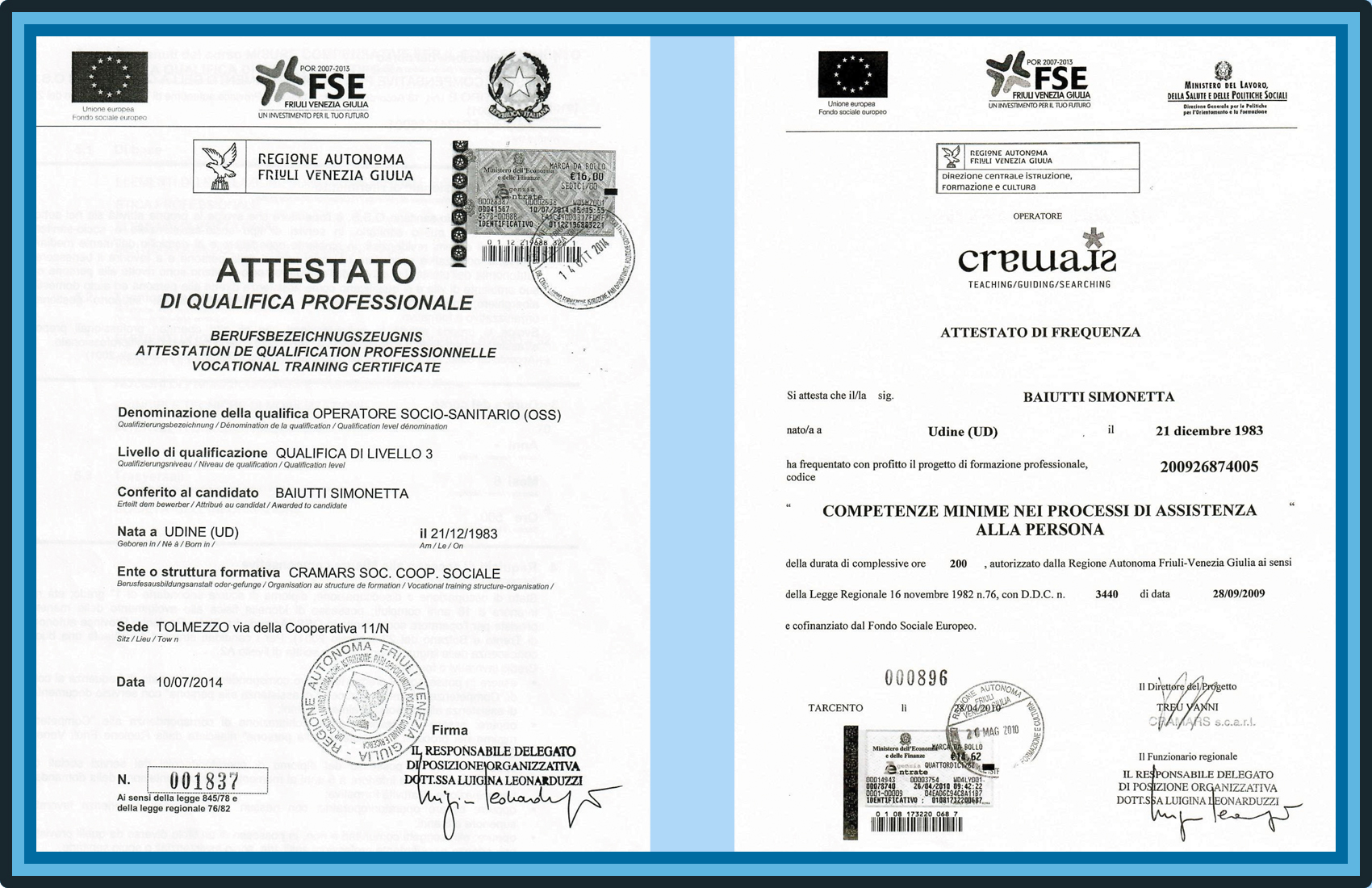 Simonetta Baiutti, OSS friulana di Nimis, è qualificata nelle professioni socio sanitarie. Con oltre 15 anni di esperienza nel settore, offre servizi di assistenza a persone autosufficienti e non-autosufficienti, malati e disabili. Si contraddistingue per un elemento fondamentale che fa la differenza in questo servizio, il lato umano. Una professionista preparata nel soddisfare i bisogni primari della persona, nell’ambito delle proprie aree di competenza, in un contesto sia sociale sia sanitario finalizzato nel favorire il benessere e l’autonomia dell’assistito.
