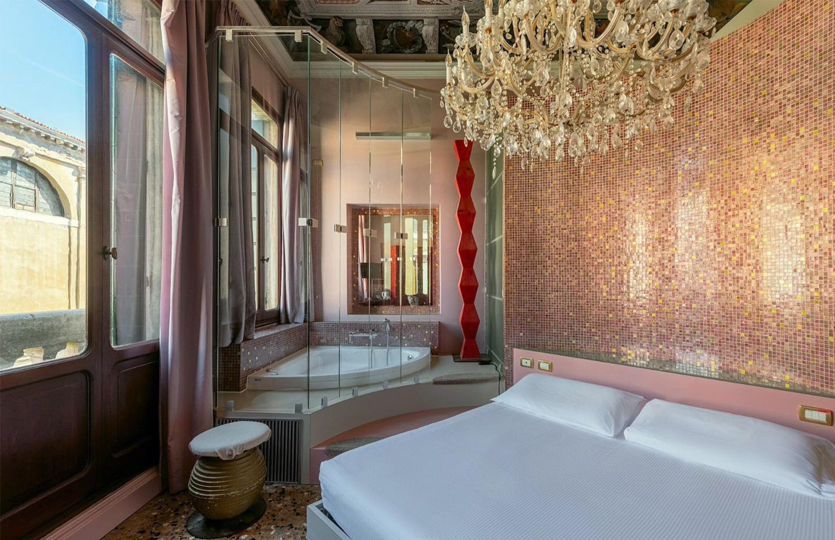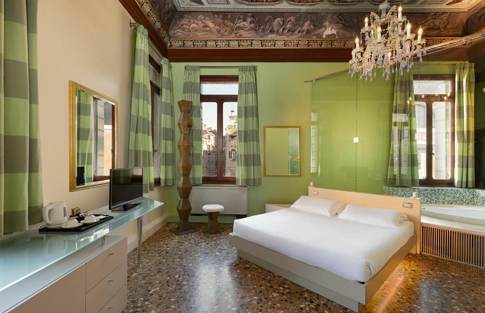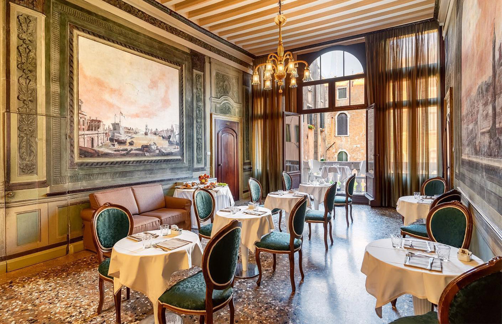 Le 9 camere dell'hotel sono arredate con grande stile e ricchezza di dettagli; alcune di essere sono dotate anche di vasca idromassaggio o soffitti affrescati. La colazione, servita in una splendida sala affrescata con vista sul Rio di San Cassian, sarà un momento particolarmente piacevole in cui godersi Venezia da un angolo privilegiato.